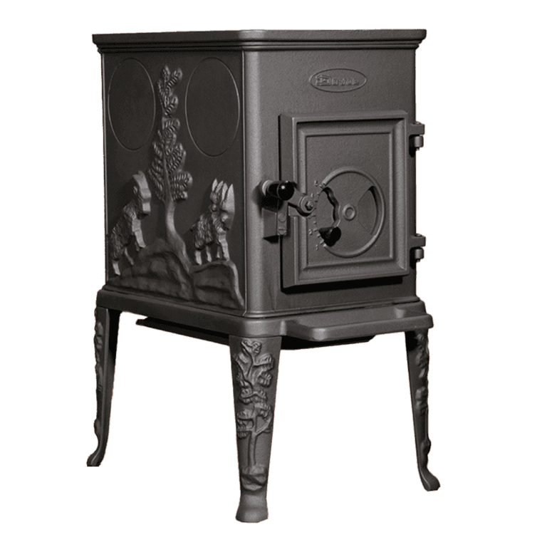De Dovre 100CBS is één van de klassiekers qua vormgeving. Hij is gemaakt van gietijzer en heeft leuke Noorse decoratieve figuren.