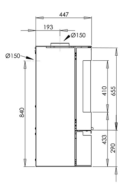 | Rookgasafvoer: | 150 mm Boven/achter |