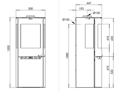 | Rookgasafvoer: | 150 mm Boven/achter |