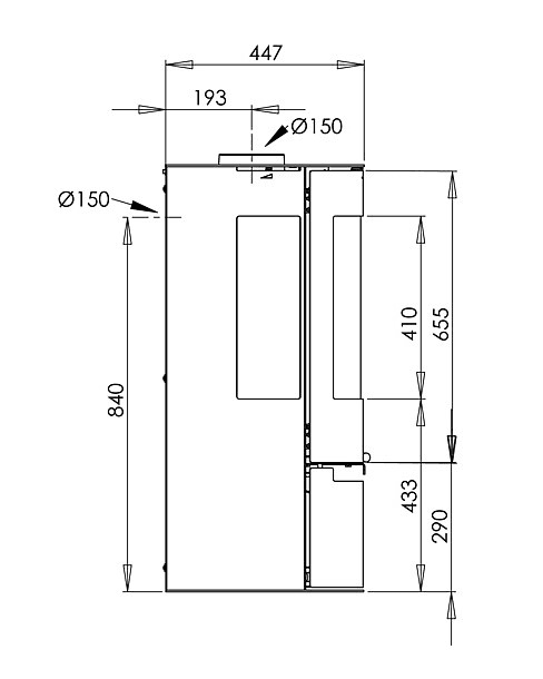 | Rookgasafvoer: | 150 mm Boven/achter |