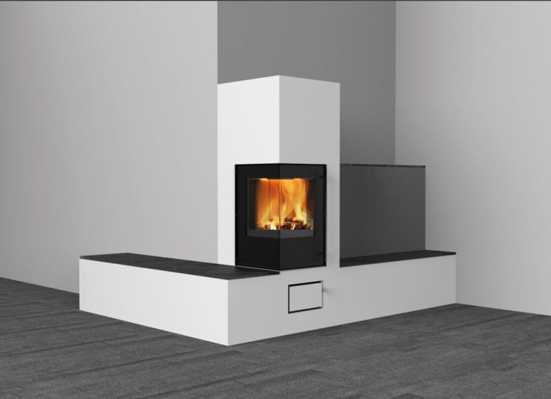Dankzij het ontwerp kan deze kachel zich perfect aanpassen naar uw woonsituatie. Er is een mogelijkheid om een bankelement met bijpassende houtopslag vakken bij deze kachel te kopen. De dubbele hoek beglazing zorgt er voor dat je de vlammen vanuit meerdere perspectieven kunt bekijken en zorgt voor een mooi effect.