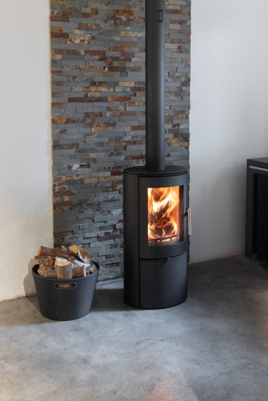 Wanneer de houtkachel als bijverwarming wordt gebruikt is de helft van het vermogen voldoende.