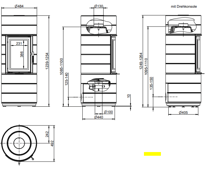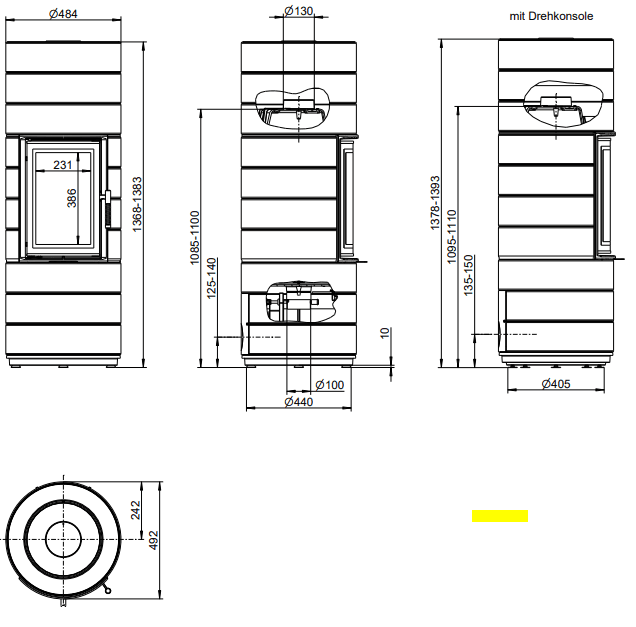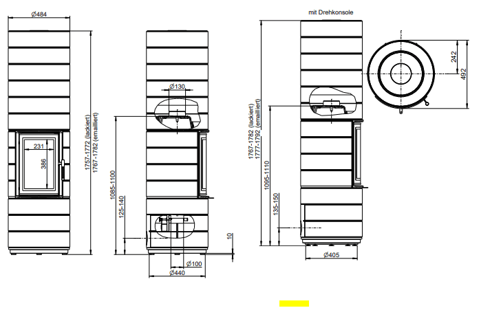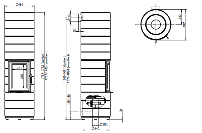 Drie hoogtes, elk in subtiel matzwarte lak, glanzend wit email, glanzend donkergroen email of glanzend donkerrood email, met ronde deur – optioneel met draaibare console (360°)