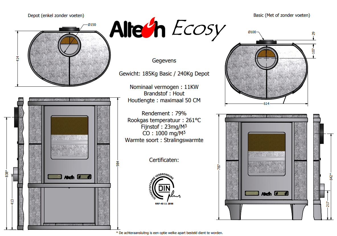 De Altech Ecosy Depot houtkachel is een speksteenkachel die voorzien is van het nieuwste verbrandingssysteem van Altech. Doordat de Altech Ecosy Depot voorzien is van een mooie grote ruit ontstaat er een mooi zicht op het vuur. Daarnaast heeft deze houtkachel een opslagvak voor hout. Het speksteen op deze houtachel is verkrijgbaar in een zijdeglans, wildblauwe of donker gezoete uitstraling.