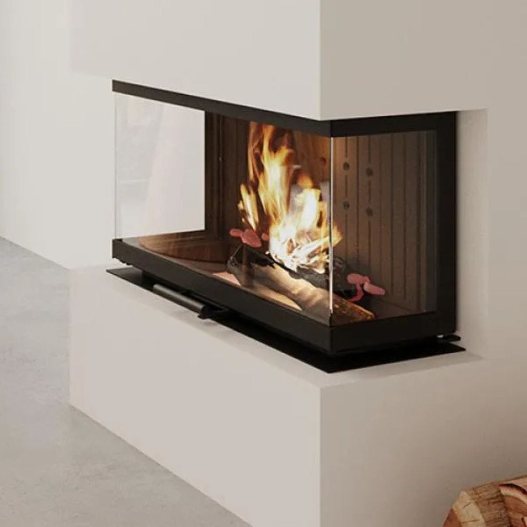 Een mooie sfeervolle haard met 3-zijdig zicht. Dit geeft een luxe uitstraling en je kan het vuur vanuit vele hoeken van de ruimte aanschouwen. Hij is standaard uitgerust met een liftdeur en heeft een zwarte binnenbekleding. Door de extra luchtaansluiting aan de bovenkant ben je verzekerd van een optimale warmteverspreiding.