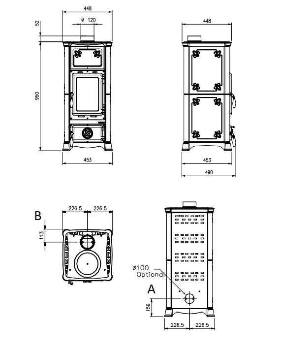 Deze mooie Emiliana heeft een klassieke uitstraling en past goed in elk interieur. Hij is verkrijgbaar in verschillende kleuren keramiek of gewoon in gietijzer. De aslade kan je eruit halen om hem makkelijk leeg te gooien en schoon te maken. De kachel is voorzien van keramisch glas.