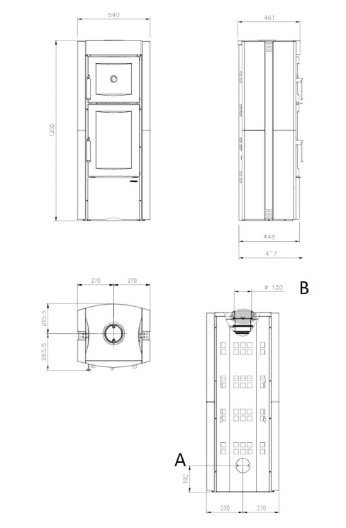 Kenmerken: Haard in gietijzeren met naverbranding • intrekbare aslade • Geëmailleerde gietijzeren deur • een oven • Keramisch glas bestendig tot 750 ° C.