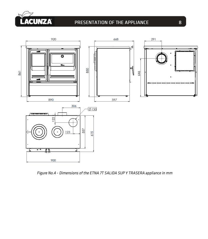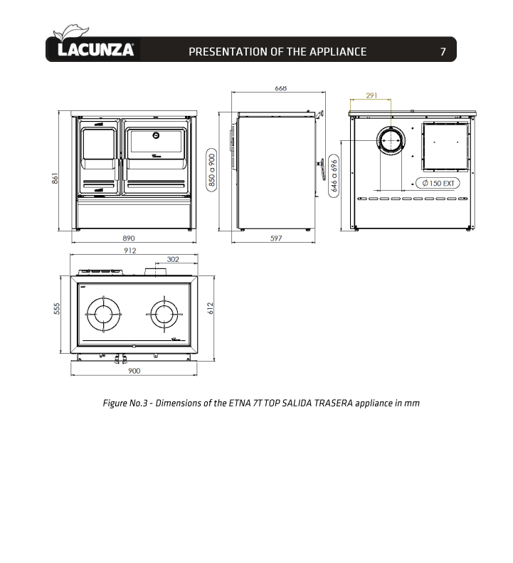 De Lacunza Etna is gemaakt van geëmailleerd zwart gietijzer. Ook heeft de Etna verstelbare poten waardoor je ook hem ook in hoogte kunt verstellen. De Etna heeft twee uitvoeringen om uit te kiezen: rvs oven en glaskeramische kookplaat, of geëmailleerde oven en een kookplaat van gepolijst ijzer. Al het deurbeslag is verchroomd.