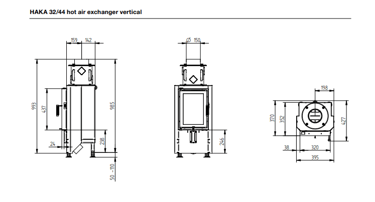 HAKA 32/44 convectiehaard – rookafvoer vertikaal