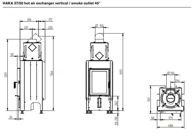 HAKA 37/50 – warmtewisselaar verticaal – rookafvoer verticaal Ø150 – enkel glas – scharnieren links: € 2.583,00