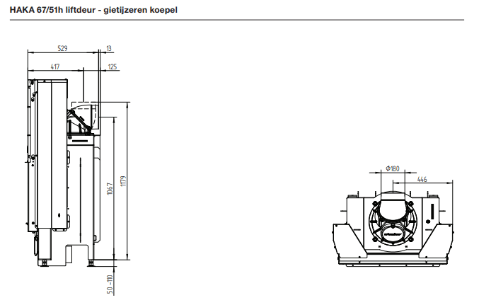 HAKA 67/51h liftdeur gietijzeren koepel Ø180 – enkel glas: € 5.044,00