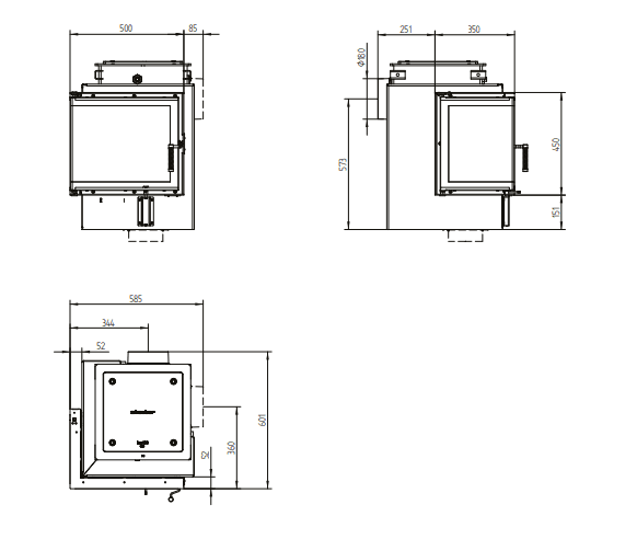 HE 50/35/45 links rookgasaansluiting Ø180 enkel glas: € 6.267,00