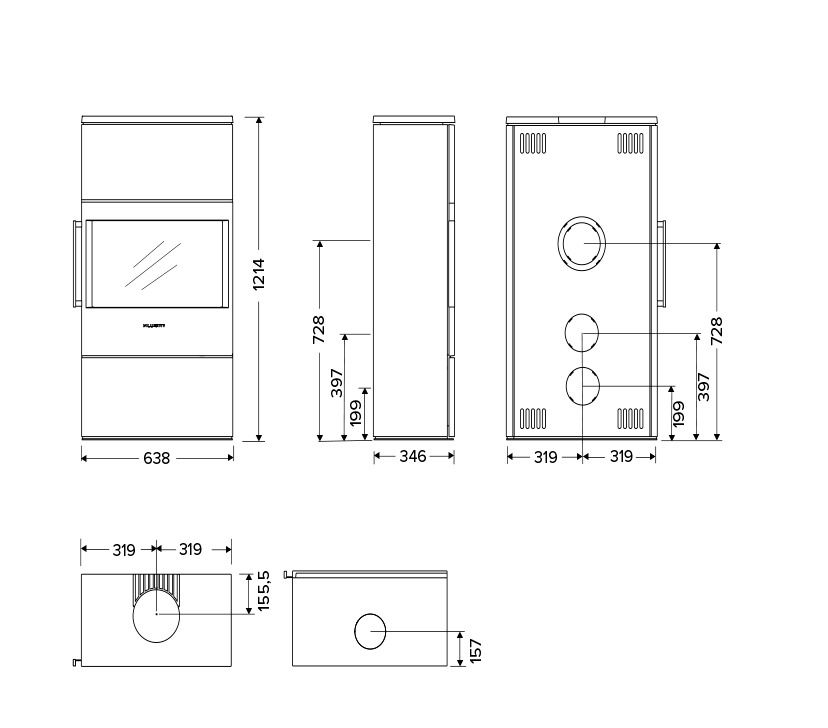 Flexibele installatie: rookgasafvoer mogelijk boven of achter, frisse luchttoevoer achter of onder via een set – mogelijkheden genoeg om de kachel mooi in je interieur én technisch passend te plaatsen.
