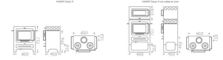De HWAM Classic 4 houtkachel is een doelmatige en flexibele haard die uit een aantal verschillende modules kan worden opgebouwd en past perfect in keuken/woonkamer of zomerhuisje, omdat zowel een kook- als een bak module tot de mogelijke heden behoren. Standaard wordt de HWAM Classic 4 geleverd in de kleur zwart of grijs. Tegen een meerprijs is een bakoven en houtvak leverbaar.