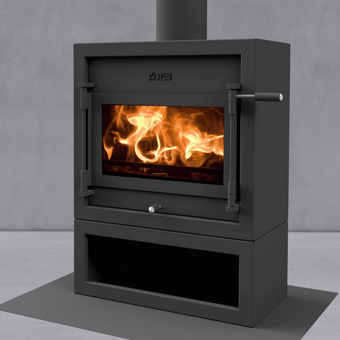 Deze mooie staande kachel van JAcobus heeft een onderstel en de hoogte van de kachel wordt door het onderstel bepaald. Waardoor je hem een stoer uiterlijk kunt geven. Standaard wordt deze kachel geleverd met een hoogte van 900mm. Het maatwerk is in iedere afmeting leverbaar, dus ook in de breedte wat dan een mooi plateau vormt.
