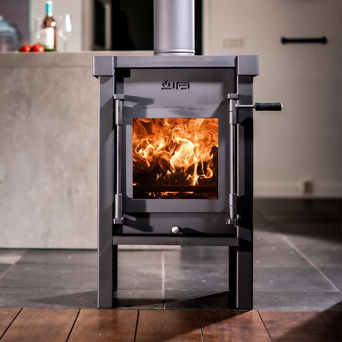 De JAcobus Doorkijk houtkachel is uniek in zijn soort. Deze houtkachel heeft aan twee zijden een deur met een glasvenster, dit zorgt ervoor dat het een haard is die goed in het midden van uw ruime te plaasen is. Zo is deze houtkachel het stralende middelpunt van uw kamer.