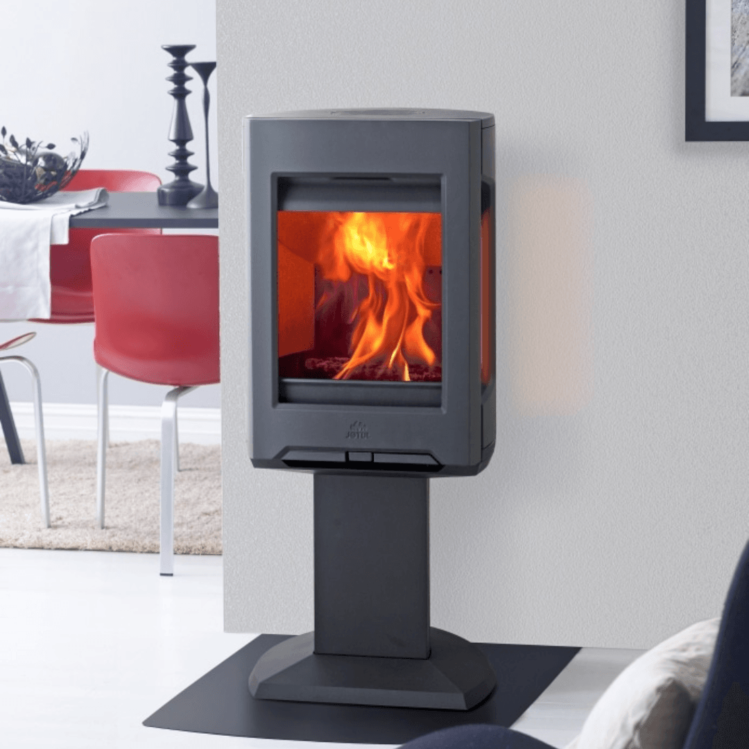 De Jøtul F 167 op sokkel geeft warmte een extra dimensie – een kachel die niet alleen verwarmt, maar ook het hart van uw interieur vormt.