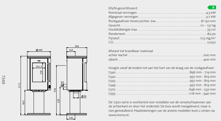 Morsø 7393, hoog model met open houtvak€ 3.099,00
