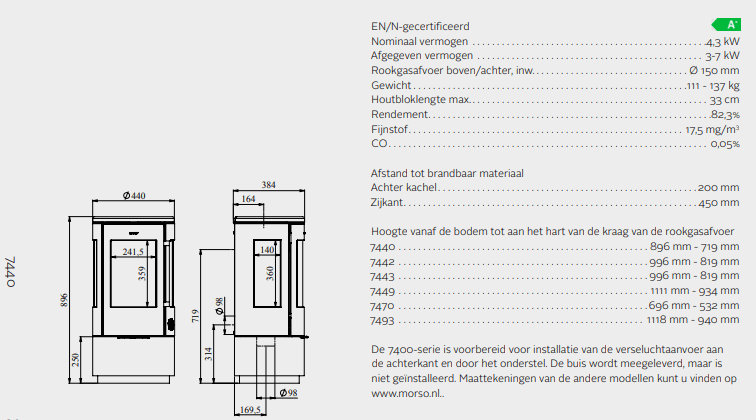 De Morsø 7470 houtkachel is een wandmodel Zo is een 180° zicht op de vlammen mogelijk.