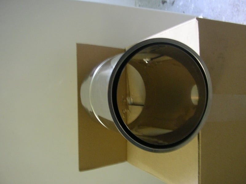 Tbv aansluiting schoorsteen op de kachelpijp. Gemaakt voor gaskachel, houtkachel, kolenkachel en oliekachel. Lasnaad superglad TIG gelast, geen overlap en dus vrijwel naadloos. RVS INOX kachelpijp Roestvrij 316L BA. 0,5 mm dik. Verbinding met krimp. Temperatuur continu 600 C. Geschikt voor onderdruk. Voldoet aan de eisen van het Bouwbesluit NPR’s, NEN normen en MPA. CE gekeurd.