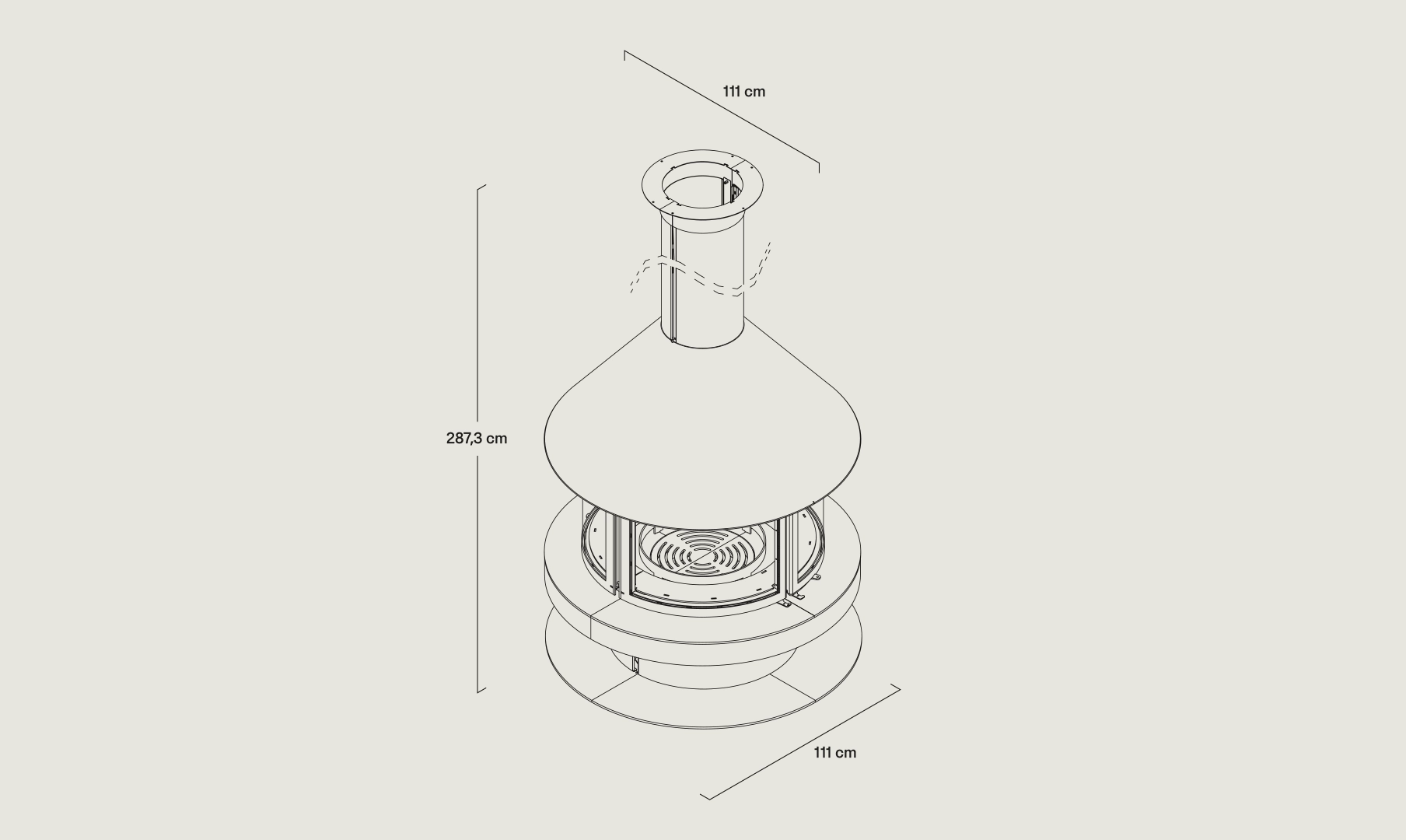 Gala is een ronde centrale haard, die opvalt door zijn hoge energie-efficiëntie. Het biedt volledig zicht op het vuur vanaf elk punt in de kamer.