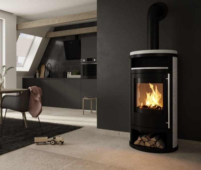 De SALADO compact heeft een enorme verbrandingskamer, het grote kijkvenster en de open houtopslag. De kachel is bekleed met getextureerde vuurvaste natuursteen, keramiek of zwart staal. De warmte wordt langer opgeslagen en je verwarmt effectiever en zuiniger. Het verstelbare rooster van de SALADO Compact verkort de opwarmtijd. De deur sluit zacht door de compacte sluittechniek. Deze kachel is luchtdicht en dus geschikt voor passieve woningen.